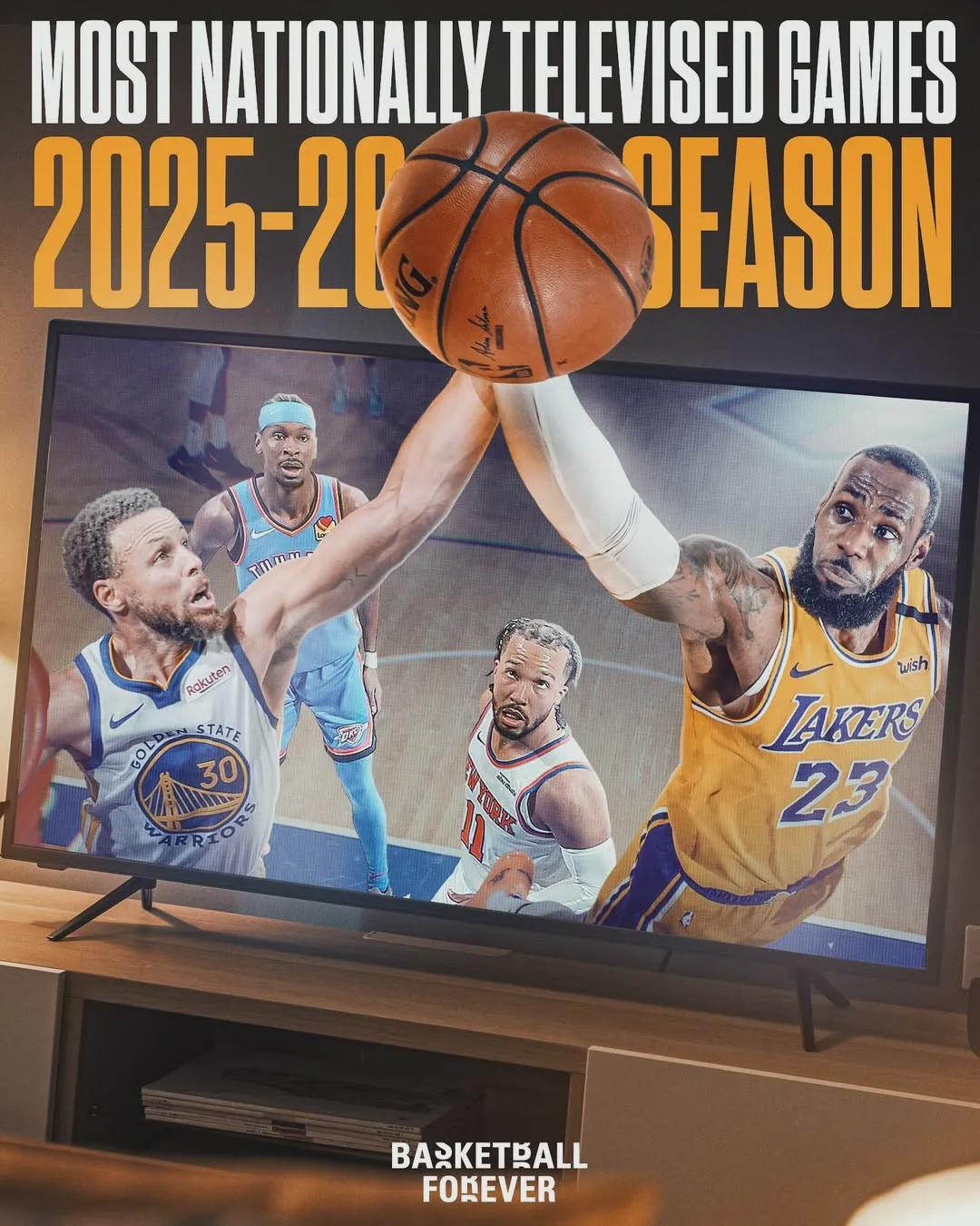 北京时间8月15日,NBA公布了新赛季的完整赛程,各队全美直播场次如下:湖人、勇士、雷霆和尼克斯均是34场,并列联盟第一;森林狼与火箭均为28场,紧随其后。接下来是掘金26场,凯尔特人25场,骑士24场,独行侠23场。