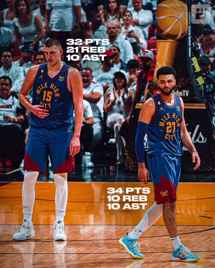 约基奇(32分21板10助)和穆雷(34分10板10助)同队同场砍下30+三双,这是历史首次出现这种情况(常规赛+季后赛)。